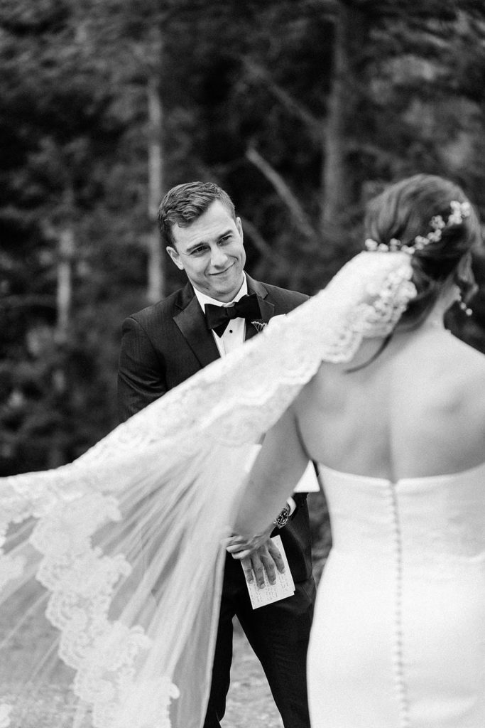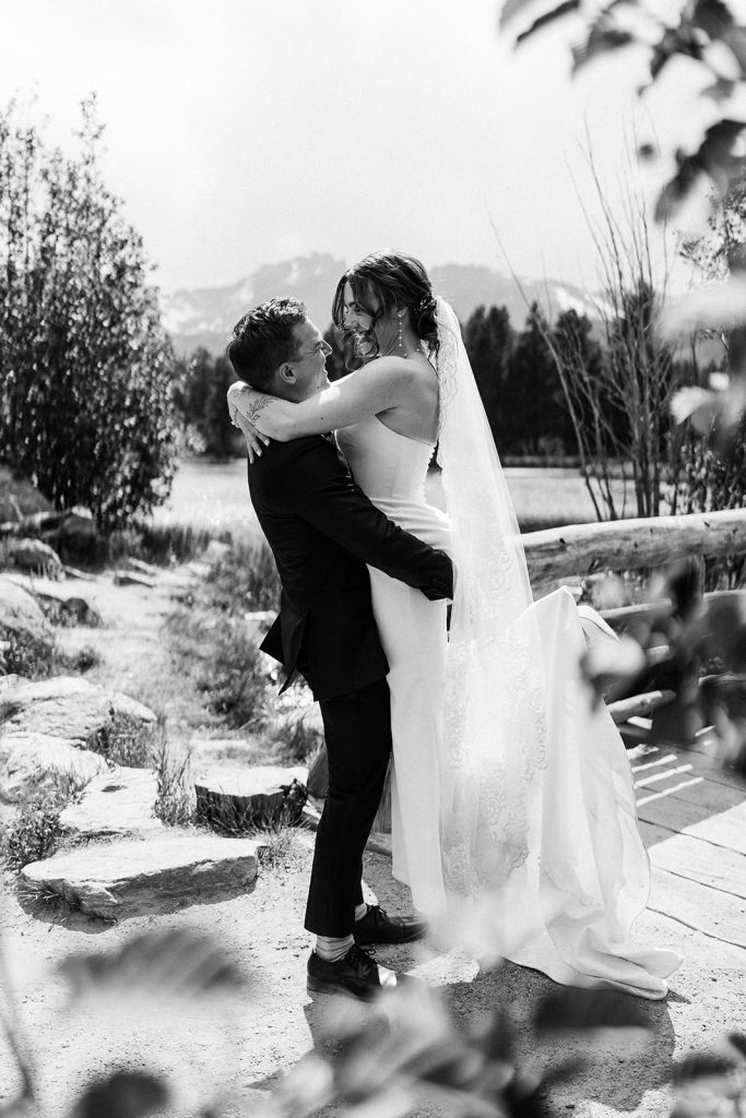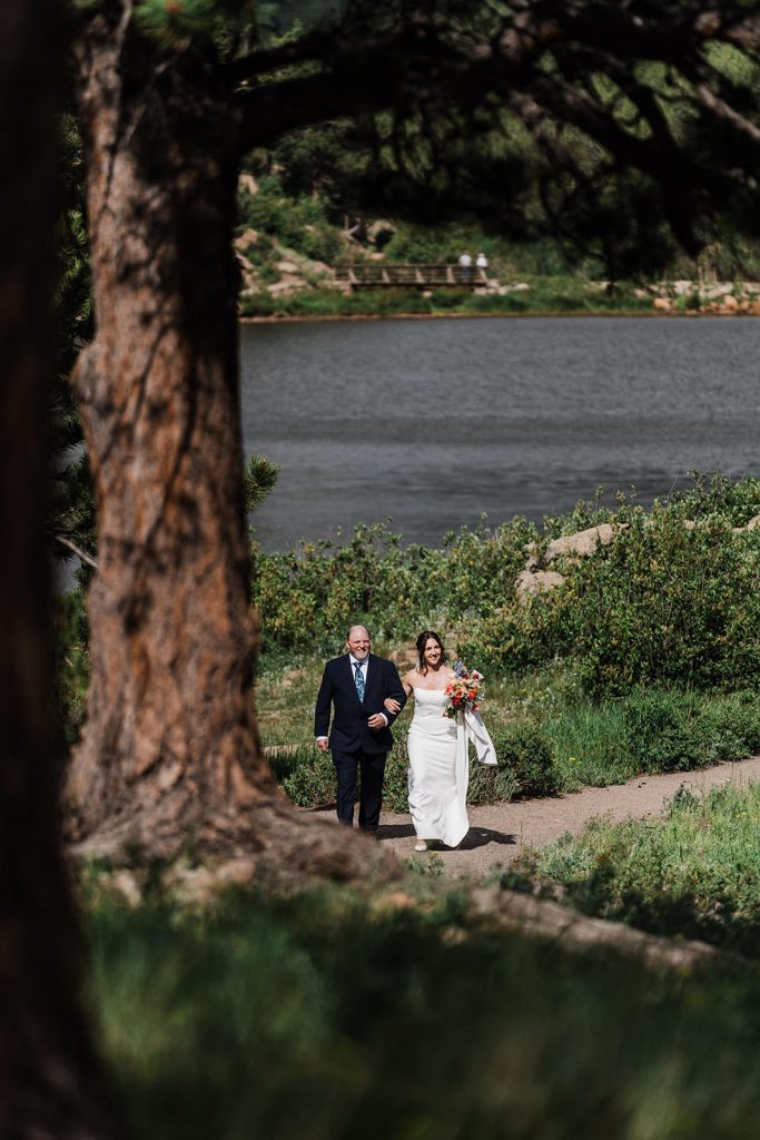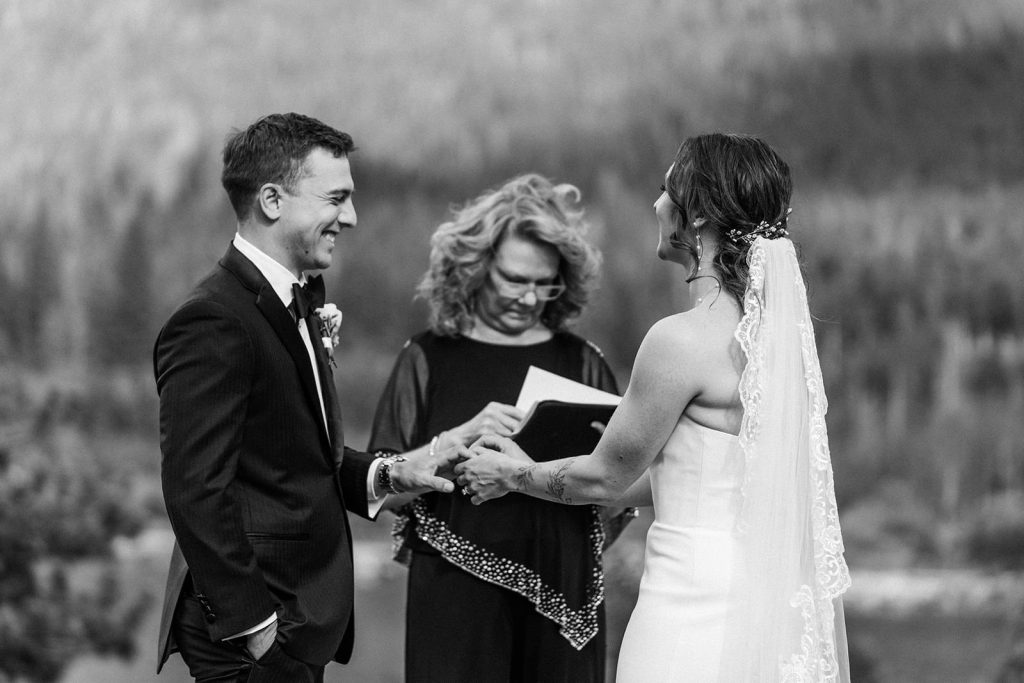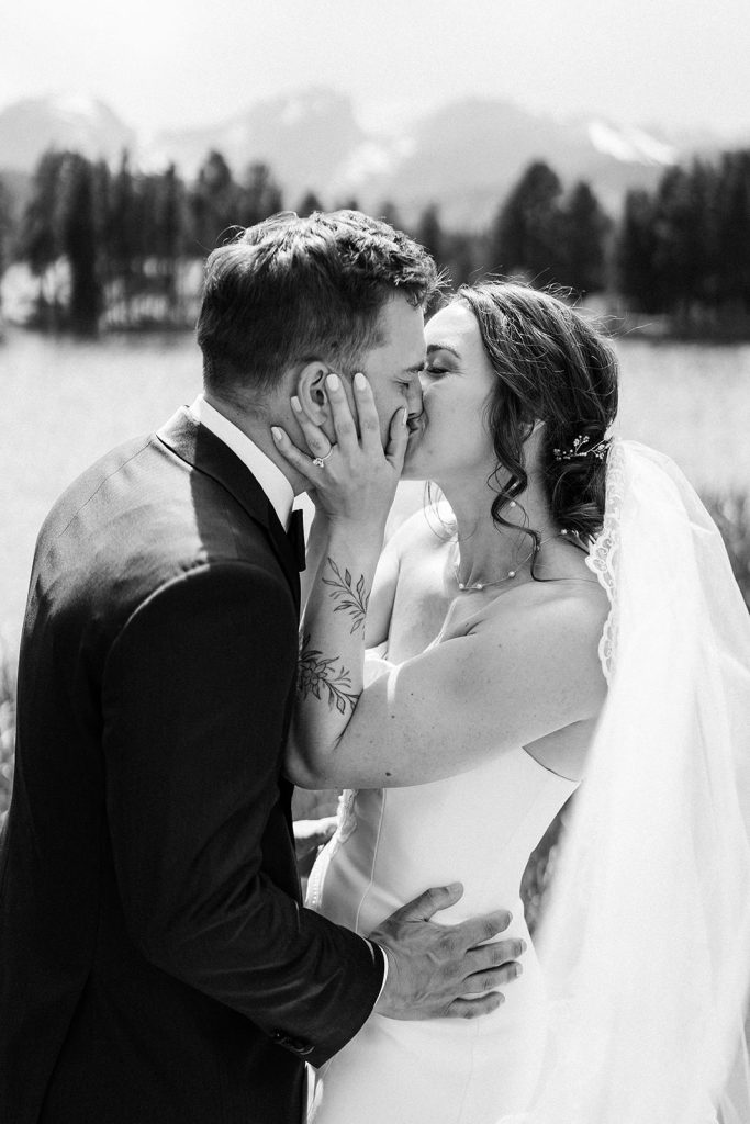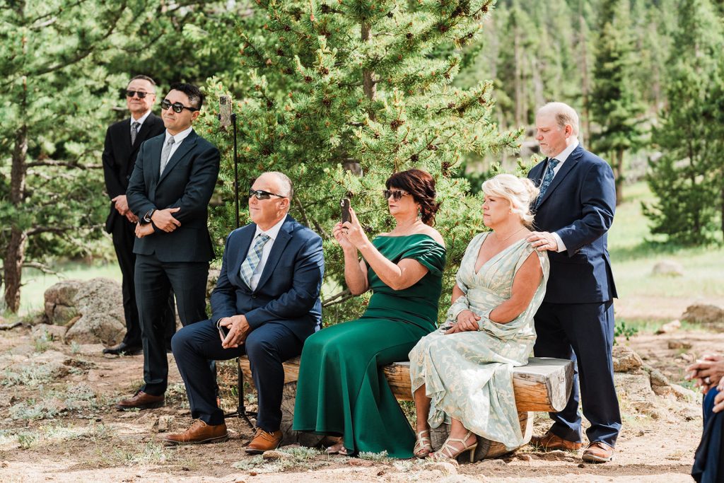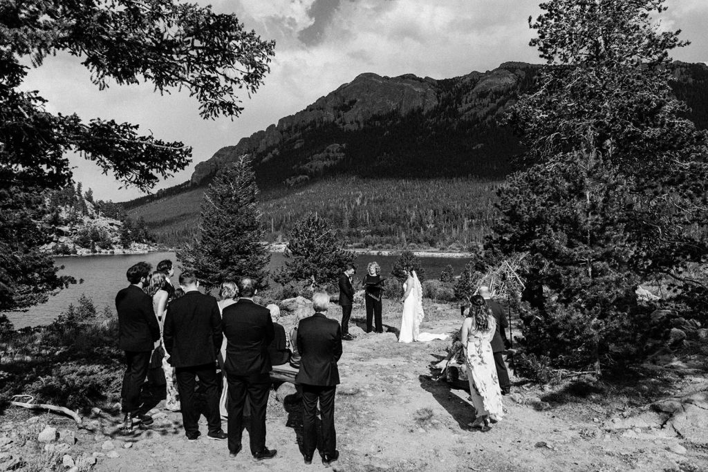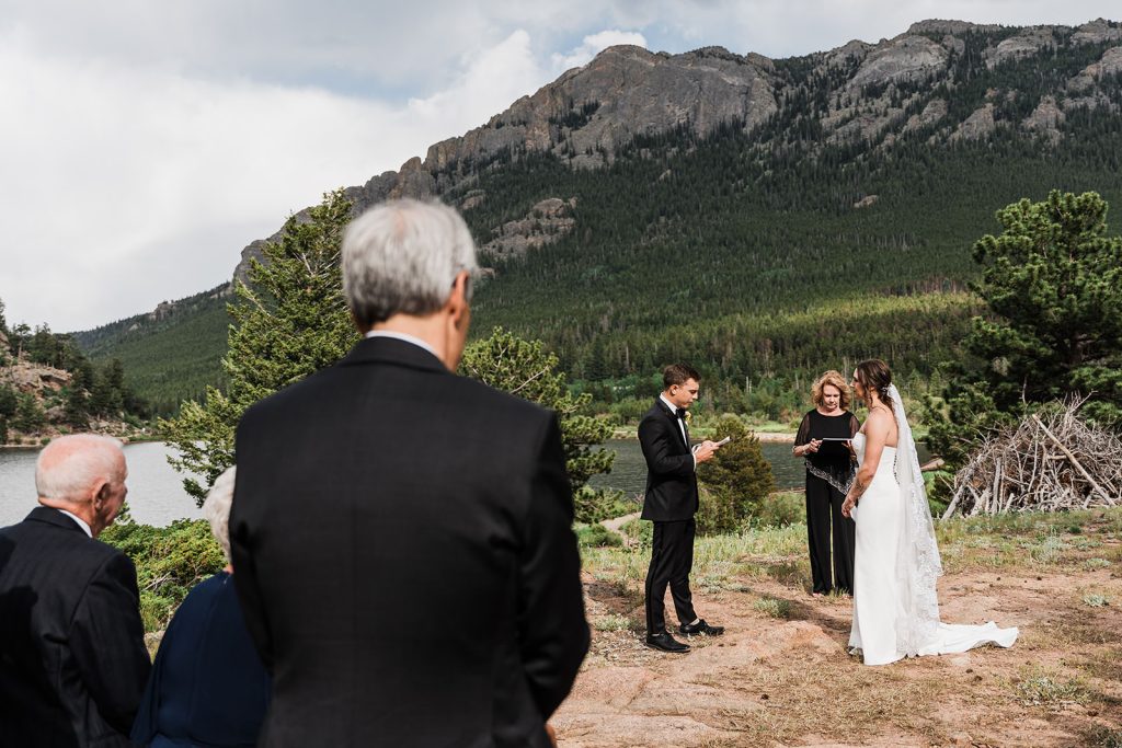 The day began with a sweet first look at their Airbnb in Estes Park, followed by spending some time exploring in the park. By the time they arrived at Lily Lake, their families were waiting for the walk to their ceremony spot. Against the backdrop of mountains and still water, they exchanged vows that felt both intimate and expansive.