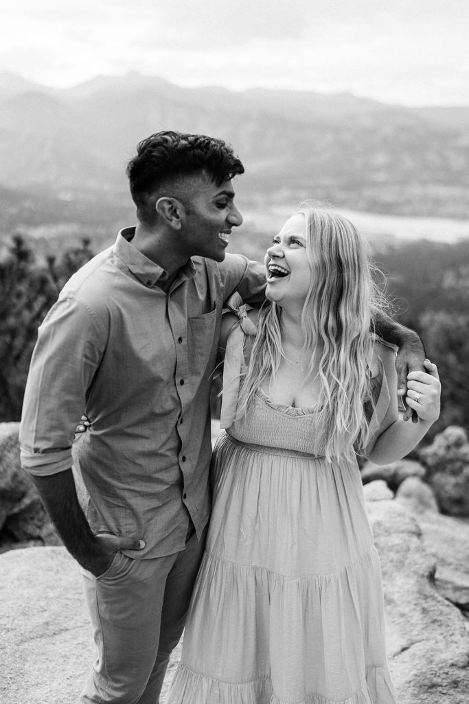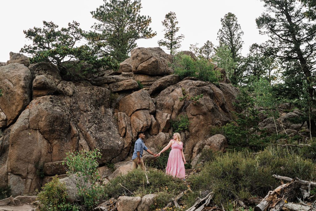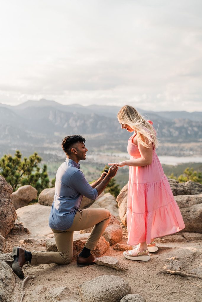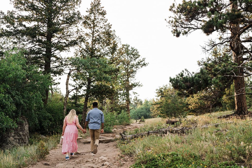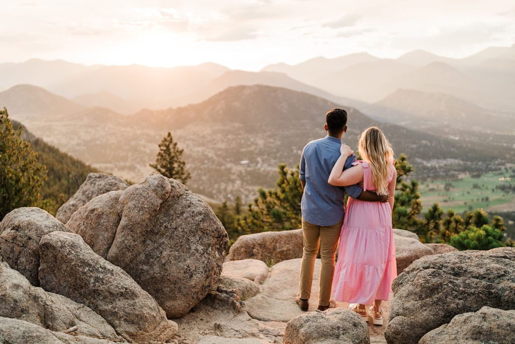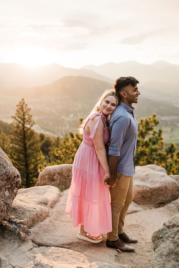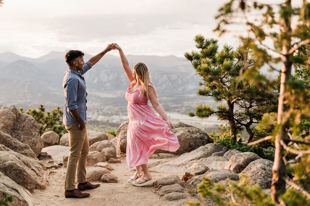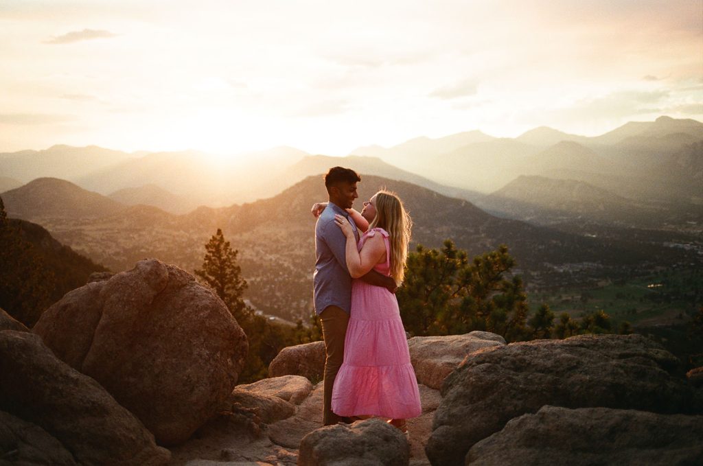 Aqil and Katie’s Hermit Park proposal in Estes Park felt like something out of their own storybook—one that had been quietly writing itself since a Bumble match turned into a long walk with Katie’s dog and a shared love of good conversation and easy laughter. By the time we hiked up to the overlook that evening, their connection already had that calm, built-to-last kind of energy. Katie thought we were just there for photos, admiring the smoky sunset creeping across the horizon.